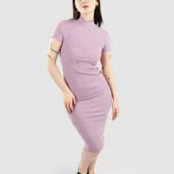 Ribbed dress with elegant high collar